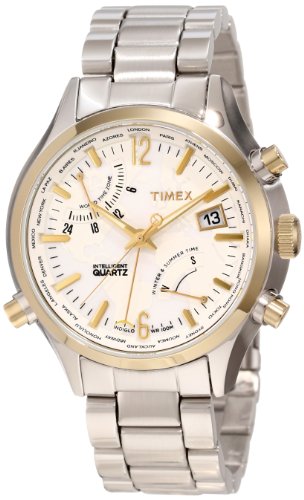 Timex Men's T2N945DH Intelligent Quartz World Time Watch - Upgrade to style and sophistication with this stylish Timex clock. With a stainless steel case 44 mm are stunning, matched with a secure stainless steel band, this clock makes an ideal accessory for any deal. The white dial sits under a mineral crystal, which combines a stylish look and easy to read display. The sleek and slim design instills this clock with a distinctive touch of luxury that can not be beaten. Other features include bright, measures seconds and waterproof., Timex Men's T2N945DH Intelligent Quartz World Time Watch.
